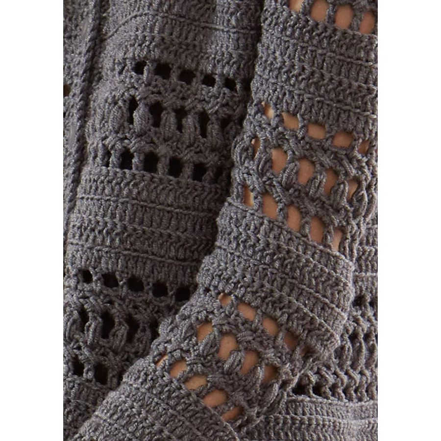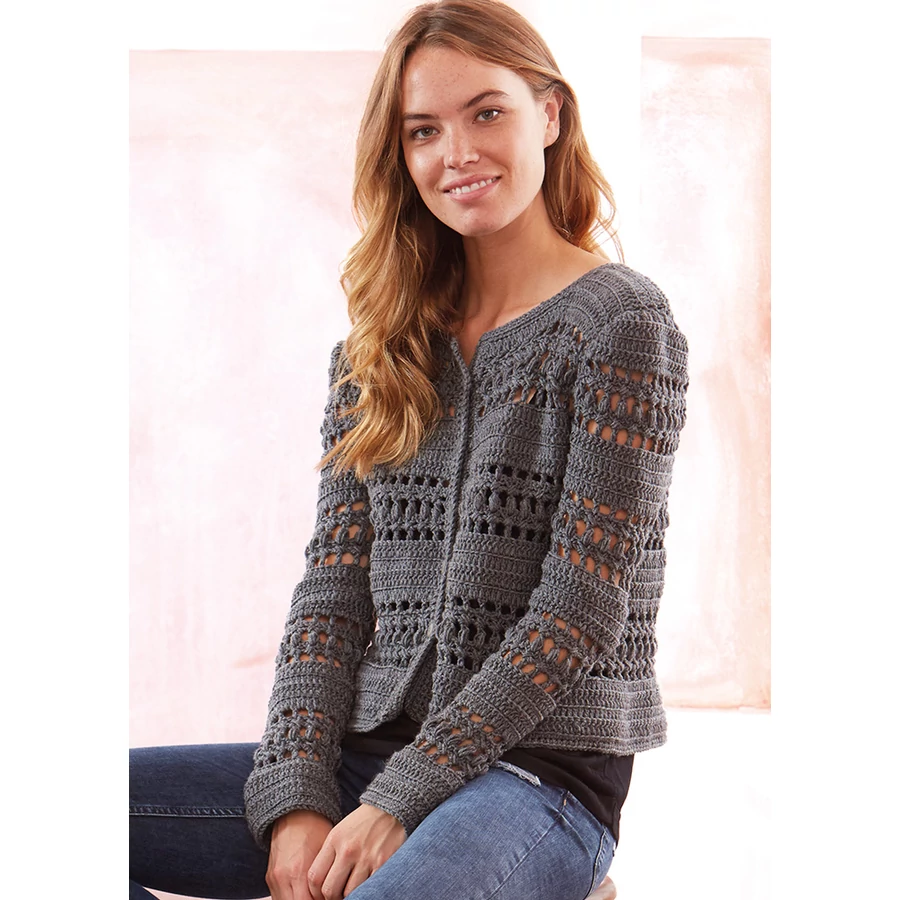 Horgolt minta: A horgolásmintarajz alapján, S-okban dolgozunk. Minden S-t így kezdünk: – vagy 2 LSZ-mel (ez helyettesíti az első rP-t), – vagy 3 LSZ-mel (ez helyettesíti az első egyrhP-t). A szegélyeket láncszemsorral kezdjük, amelyet mindkét oldalról rP-kal körbehorgolunk (lásd a mintarajzon a szürke nyilakat). A lyukminta ME 3 SZ-es és 9+1 S-os. az 1–9. S-t folyamatosan ismételjük. A 10. S-t szürkével jelöltük a jobb áttekinthetőség érdekében.A ME előtti SZ-ekkel kezdünk, majd a 3 SZ-es ME-et ismételjük végig a S-ban, végül a ME utáni SZ-ekkel zárjuk a S-t.
