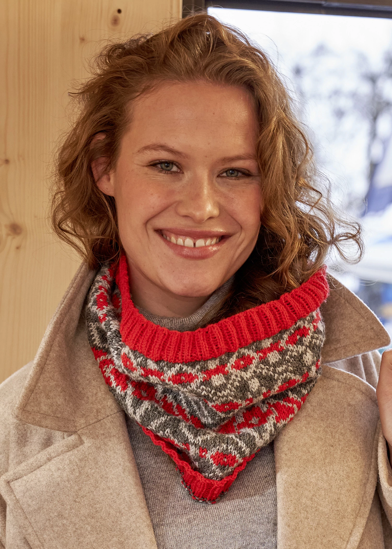 1-1 gombolyag piros (lipstick, 00030) – világosszürke melírozott (00090) – középszürke melírozott (00091) Regia Prémium Pure gyapjúfonal (100% merinó gyapjú; 100 g/400 m); 3-as és 3,5-ös, 60 cm-es körkötőtű; 1 szemjelölő; gyapjúvarrótű.