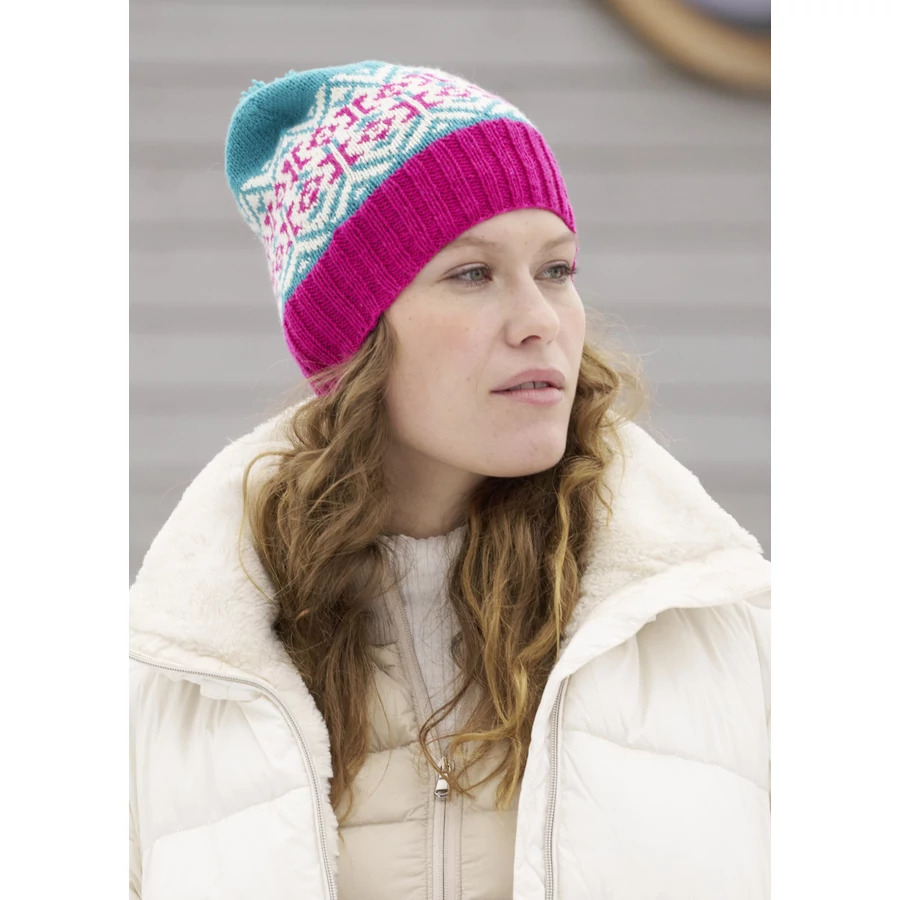 1-1 gombolyag krém (00002) – karibi (kék, 00068) – magenta (00037) Regia Prémium Pure gyapjúfonal (100% merinó gyapjú; 100 g/400 m); 1 garnitúra 3-as és 3,5-ös zoknikötőtű, 10 db szemjelölő, gyapjúvarrótű.