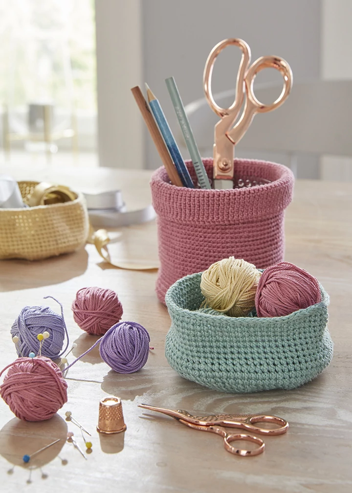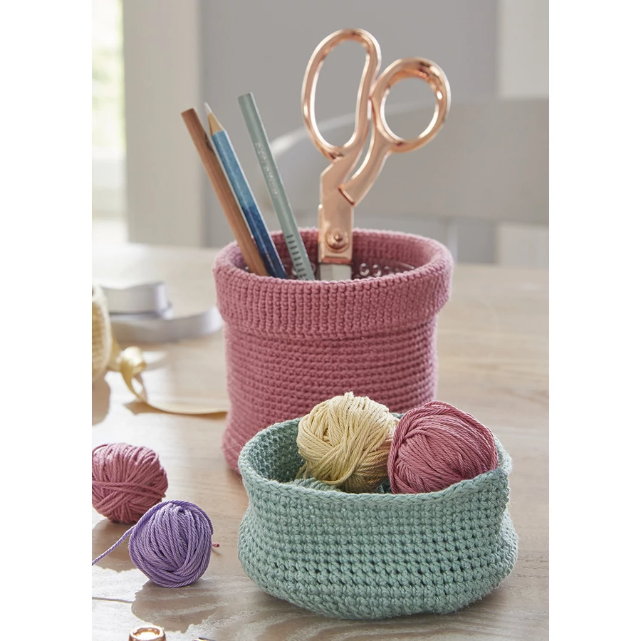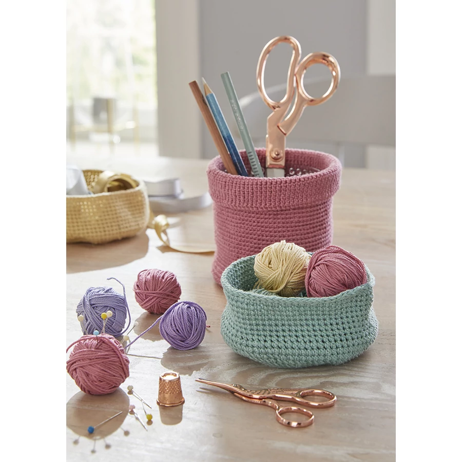 1-1 gombolyag A: hortenzia (00502); B: zsálya (00507); C: szalmasárga (00509) Schachenmayr Catania kötőfonal (100% pamut; 50 g/125 m); 1 db 2,5 mm-es horgolótű.