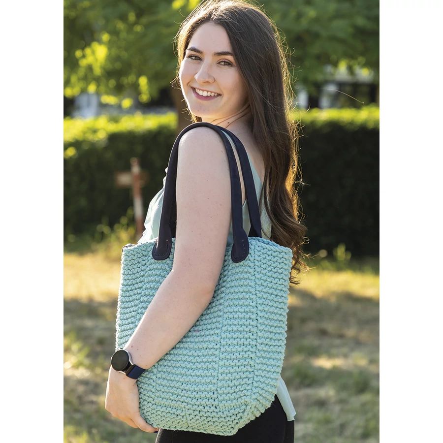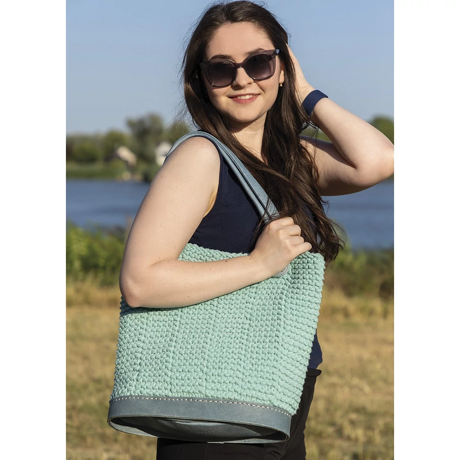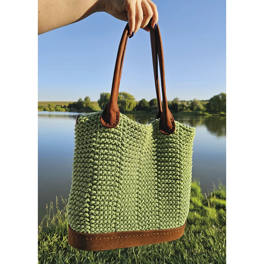 2/3/3 gombolyag mentazöld (00066), almazöld (00070), púderrózsaszín (00036), 3 mm-es makramé fonal (80% pamut, 20% poliészter; 250 g/65 m); táskafül és táskatalp / táskafül / táskafül; 6-os–8-as, 80 cm-es körkötőtű, nagyfokú tompa varrótű, erős varrócérna (bőrvarrócérna) a fülek és a táskatalp felvarrásához, bélésanyag, olló