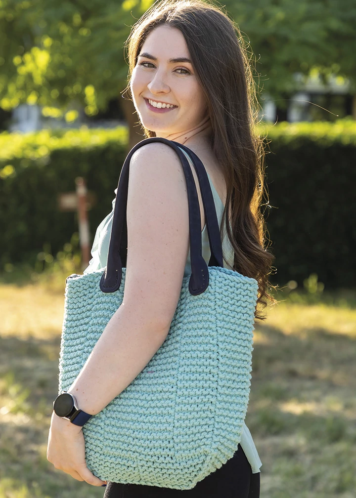 B) változat: táskatest bordás lustakötéssel, kötött aljjal