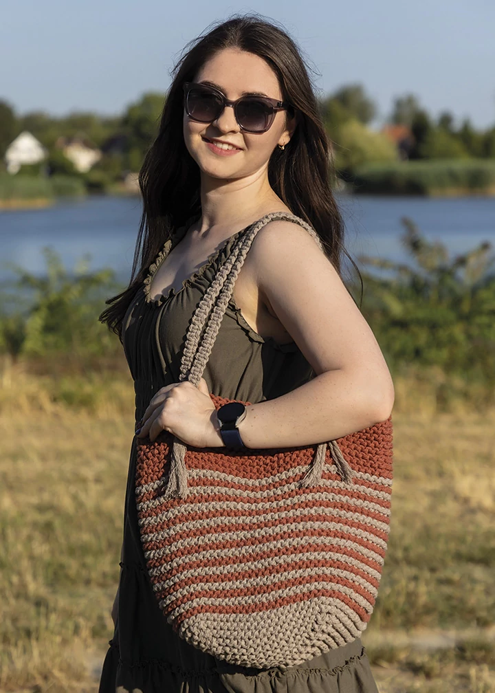 Táska kötésminta spirálkötéssel két színnel